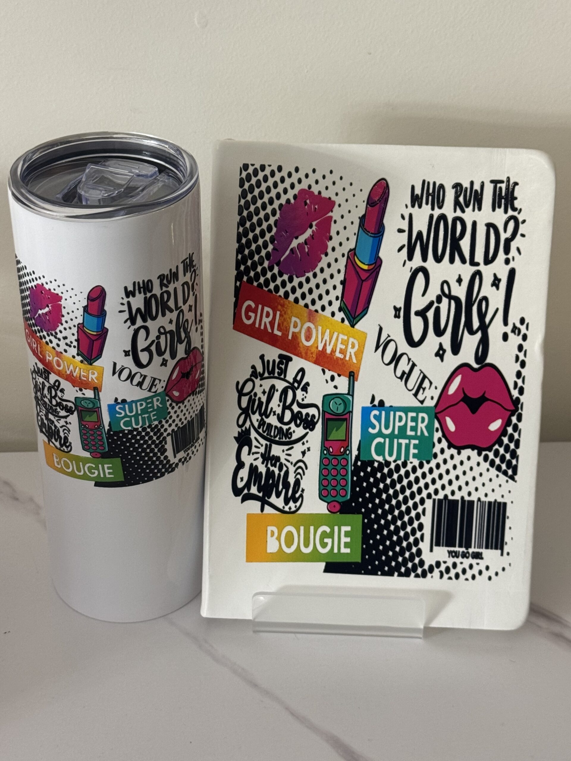 White Hardcover Journal with matching Tumbler Includes Straw and Pen