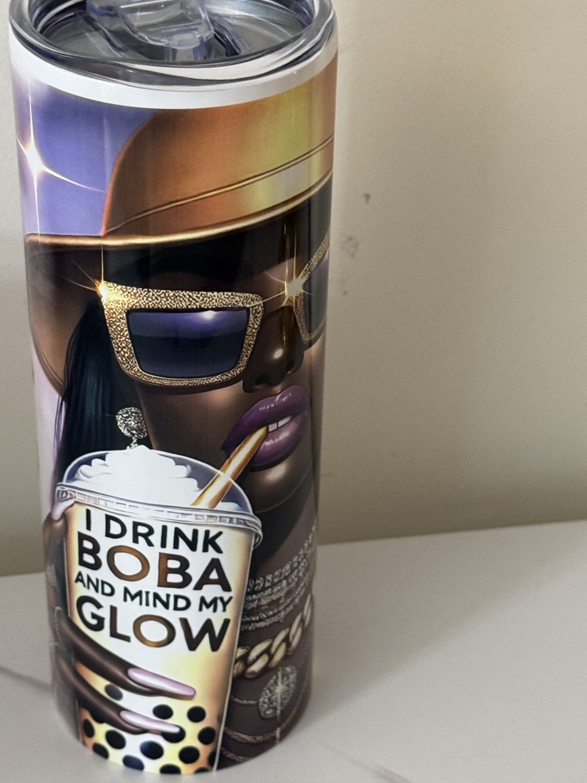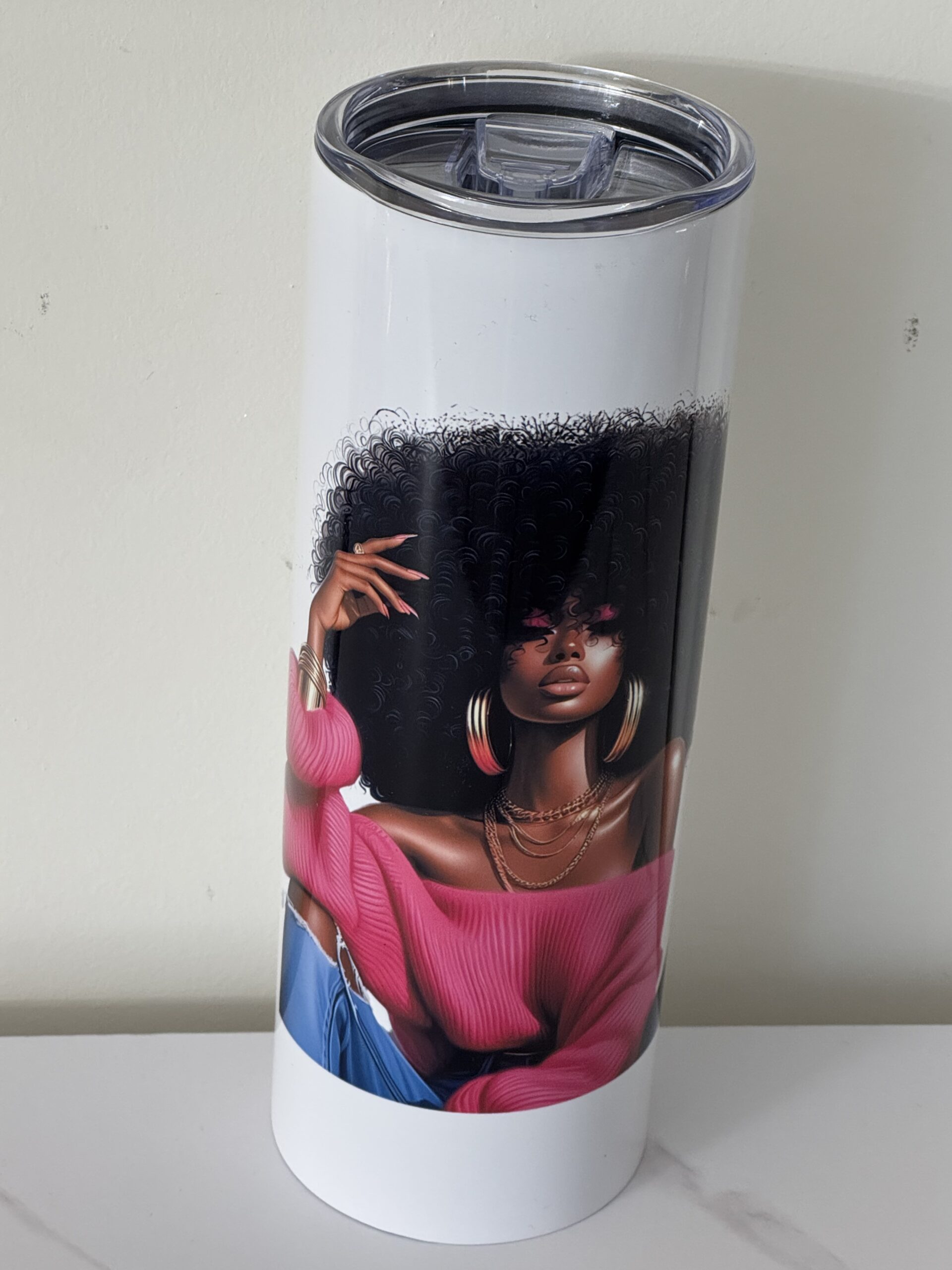 This tumbler cup features a Black women who is loving her natural beautiful afro